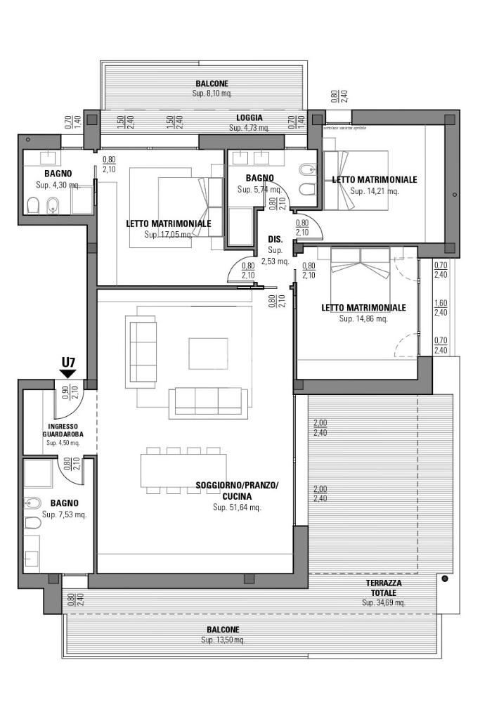 Completano questa proposta al piano terra il garage per un'auto e il posto auto scoperto ubicato all'interno della zona comune.