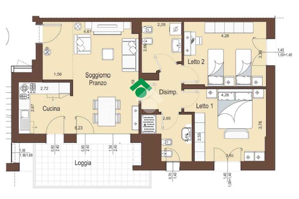 Situato al secondo piano di tre piani totali di una palazzina con ascensore di sole otto unità, l'immobile offre un ambiente moderno e confortevole. L'ingresso all'abitazione è diretto nella zona giorno, unico ambiente con cucina a vista caratterizzato dalla luminosità grazie l'esposizione a sud, e accesso diretto al terrazzo, spazio ideale anche per un aperitivo o cena ammirando il tramonto. Nel reparto notte sono presenti due camere da letto matrimoniali e due bagni.