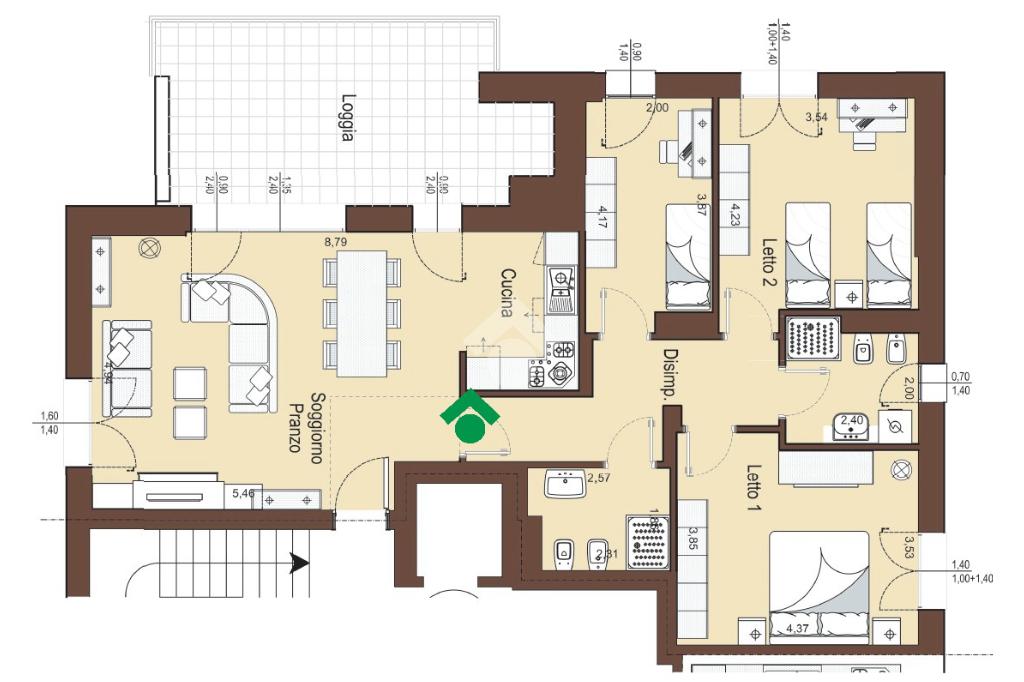 Situato al secondo piano di tre totali di una palazzina con ascensore di sole otto unità, l'immobile offre una generosa metratura interna. L'ingresso è diretto nella zona giorno di circa 40 unico ambiente con cucina a vista e accesso diretto al terrazzo coperto di quasi 20 mq.. Ben distribuito il reparto notte dove sono presenti due camere matrimoniali, una camera singola e due bagni completi di doccia.