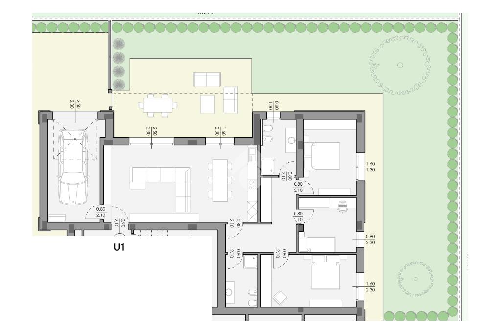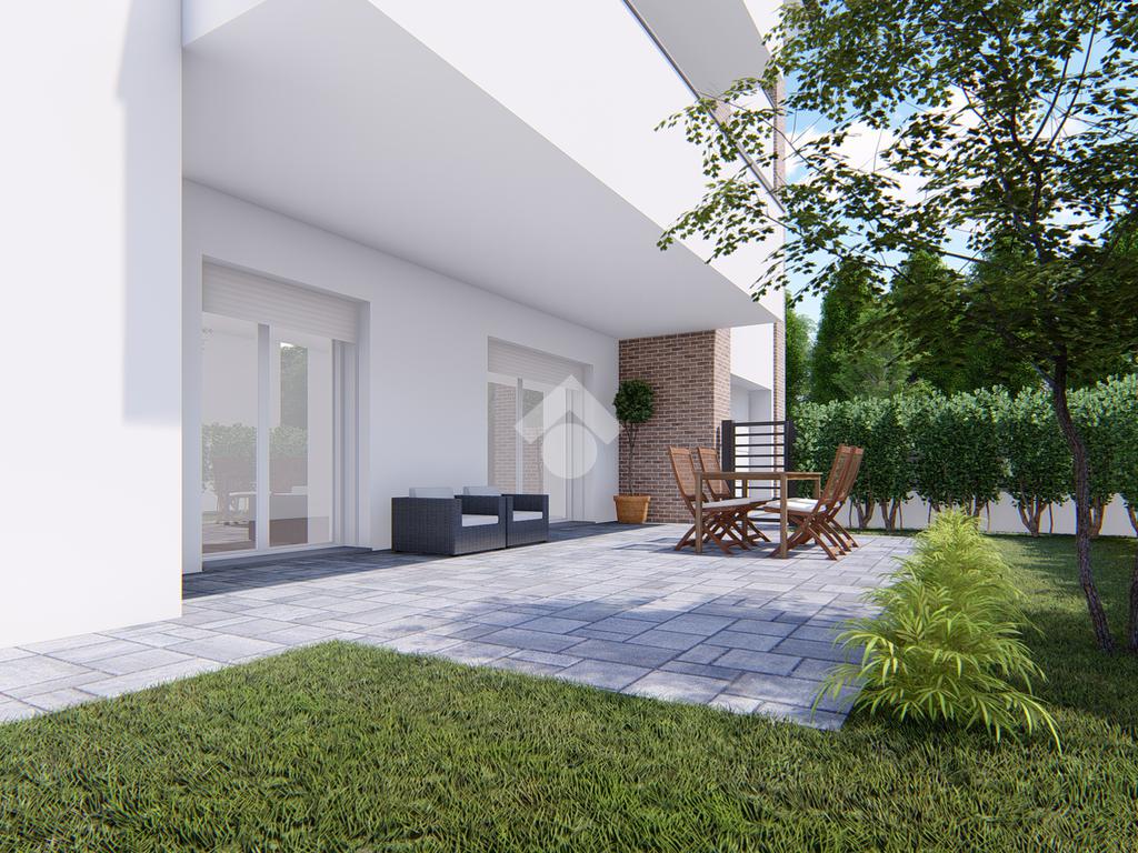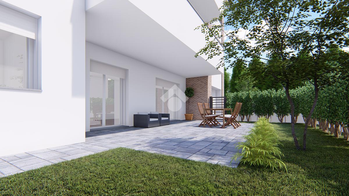 L'appartamento che qui vi presentiamo è posto al piano terra e gode di tre lati liberi con esposizione nord-est-sud. L'ingresso è diretto nella generosa zona giorno, luminoso ambiente open-space di circa 40 mq. che si affaccia su uno splendido loggiato ideale da sfruttare con la propria famiglia e amici nei mesi caldi. L'eccellenza di questa abitazione è certamente il giardino privato di 170 Nel reparto notte sono presenti due camere da letto matrimoniali, una comoda camera da letto singola e due bagni dotati di doccia. Completano questa proposta il garage per un'auto dotato di portone sezionale automatizzato accessibile internamente dall'abitazione e il posto auto scoperto ubicato all'interno della zona comune.