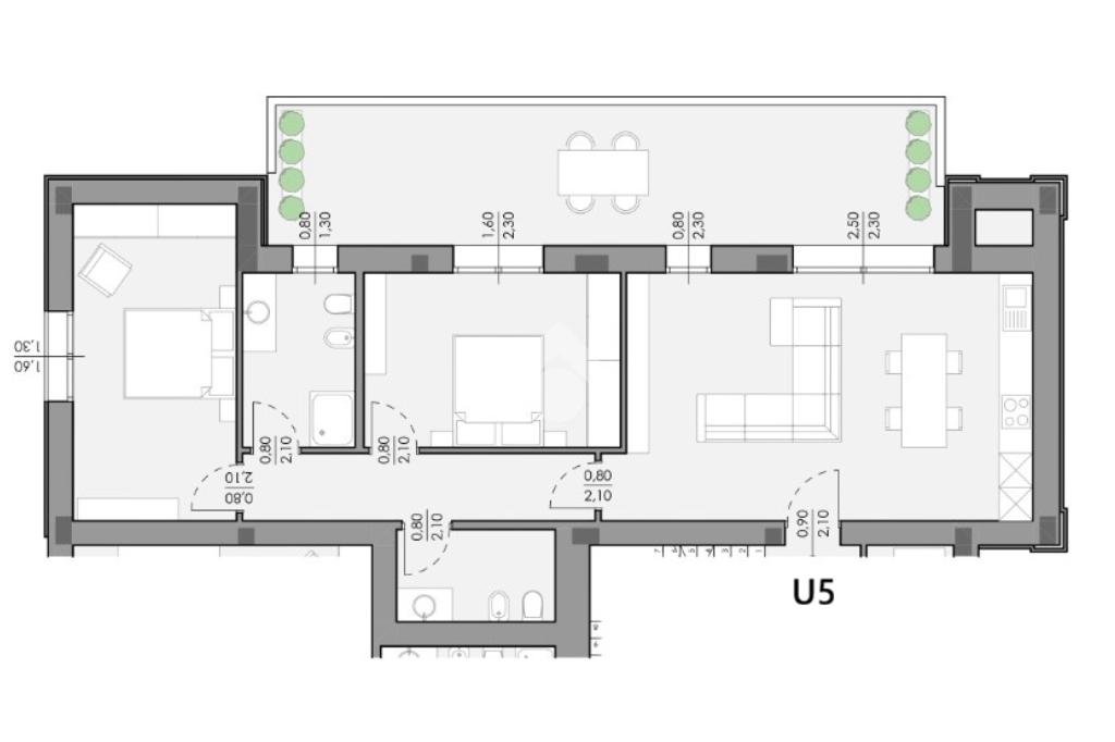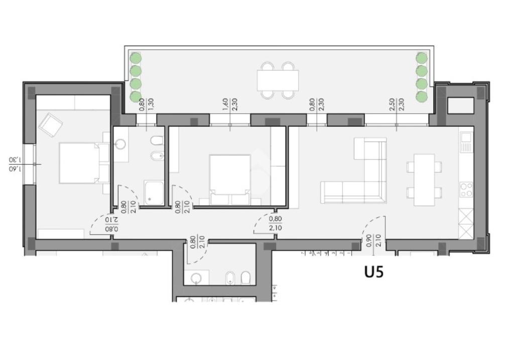 L'appartamento che qui vi presentiamo è posto al 2° piano e gode di tre lati liberi con esposizione nord-ovest-sud. L'ingresso è diretto in un'ampia zona giorno, luminoso ambiente open-space di oltre 30 mq. che si affaccia sul terrazzo di quasi 30 mq., ideale da sfruttare con la propria famiglia e amici nei mesi caldi. Nel reparto notte sono presenti due camere da letto matrimoniali e due bagni. Completano questa proposta al piano terra il garage per un'auto dotato di portone sezionale automatizzato e il posto auto scoperto ubicato all'interno della zona comune.
