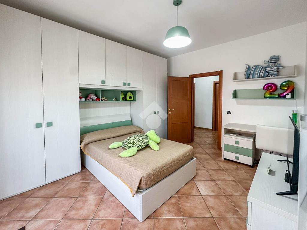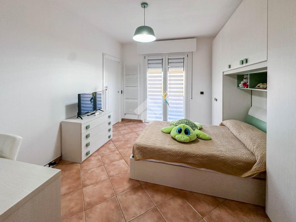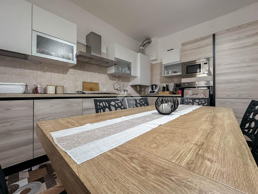 Completamente ristrutturato internamente nell'anno 2008 e con una ridistribuzione interna di qualche locale, l'appartamento eccelle sicuramente per l'ambiente di maggior uso quotidiano, ovvero la cucina abitabile di generose dimensioni, ideale per chi ama cucinare e condividere momenti conviviali. Il salotto ad oggi è stato attrezzato al solo utilizzo relax e tv. Le camere da letto sono tre: una ampia matrimoniale con affaccio sul parco, una comoda cameretta, e ulteriore camera matrimoniale con balcone e bagno finestrato dotato di doccia e attrezzato a lavanderia. Il bagno principale è completo di doccia.