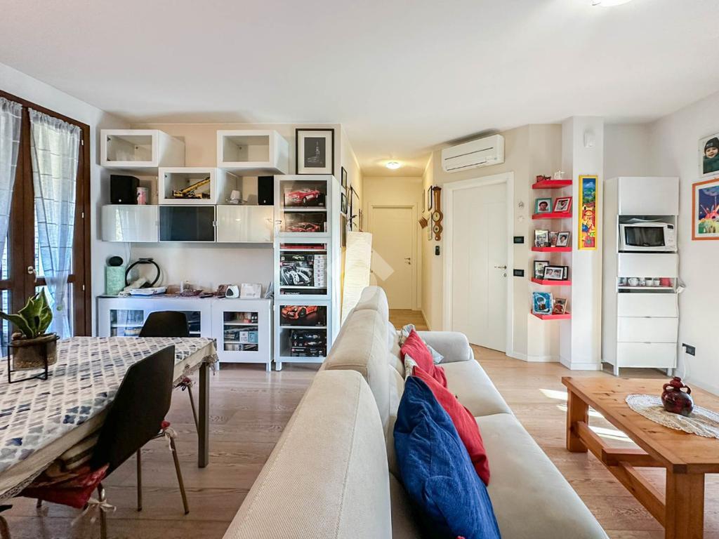 L'abitazione è posta al secondo piano di una signorile palazzina dell'anno 2008, esternamente in mattoni anticati e dotata di scuretti di legno: una estetica evergreen di indubbio fascino! La palazzina è composta da sole tre unità nel corpo scala servito da ascensore, oltre la maisonette che dispone di un proprio ingresso indipendente.