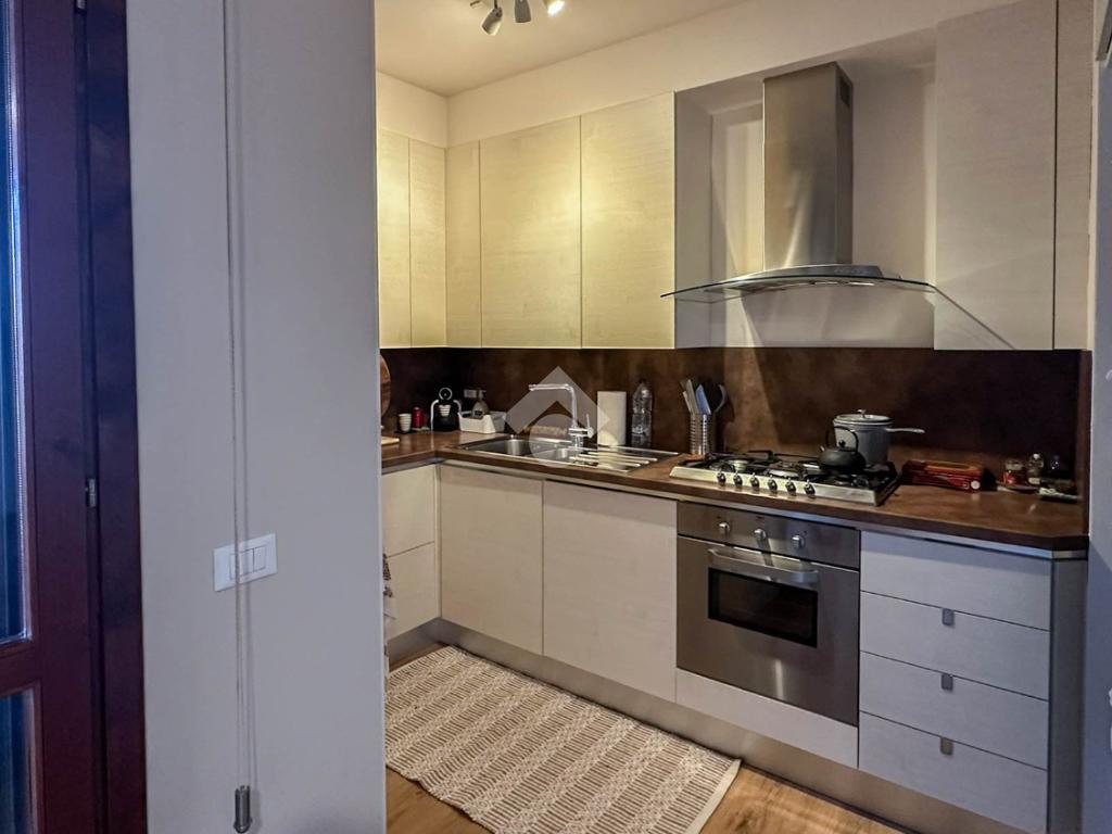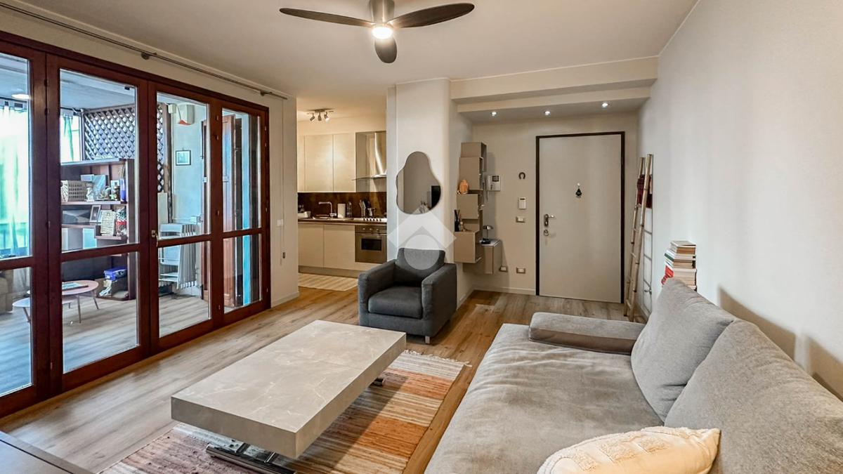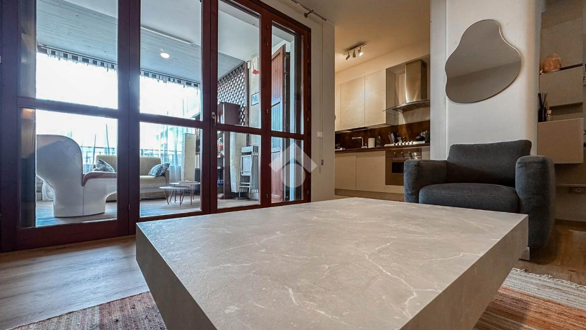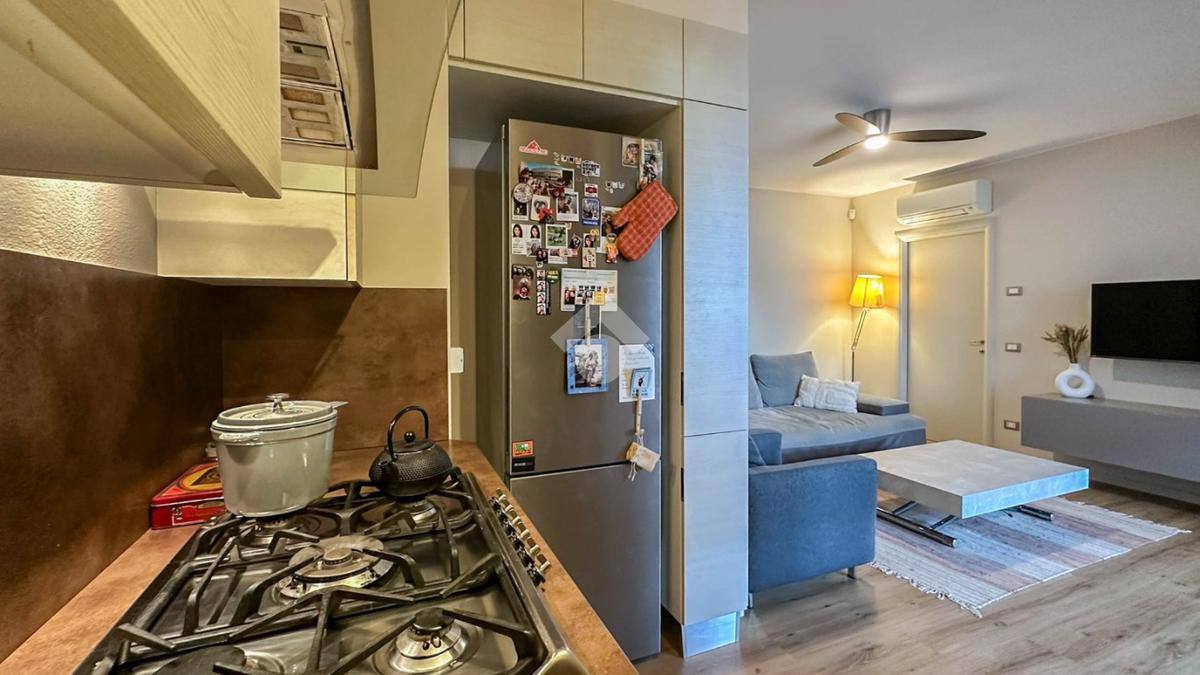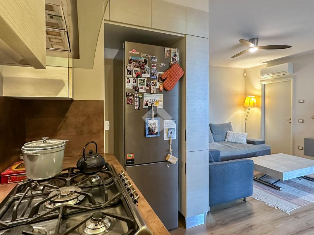 Entrando nell'appartamento si viene accolti dal living con angolo cottura a vista e accesso diretto al terrazzo, confortevole ambiente che grazie alla veranda presente consente disporre di un 'secondo' salottino.