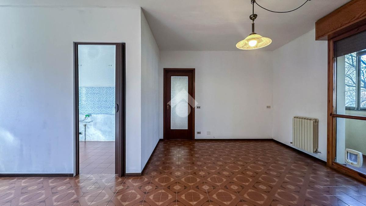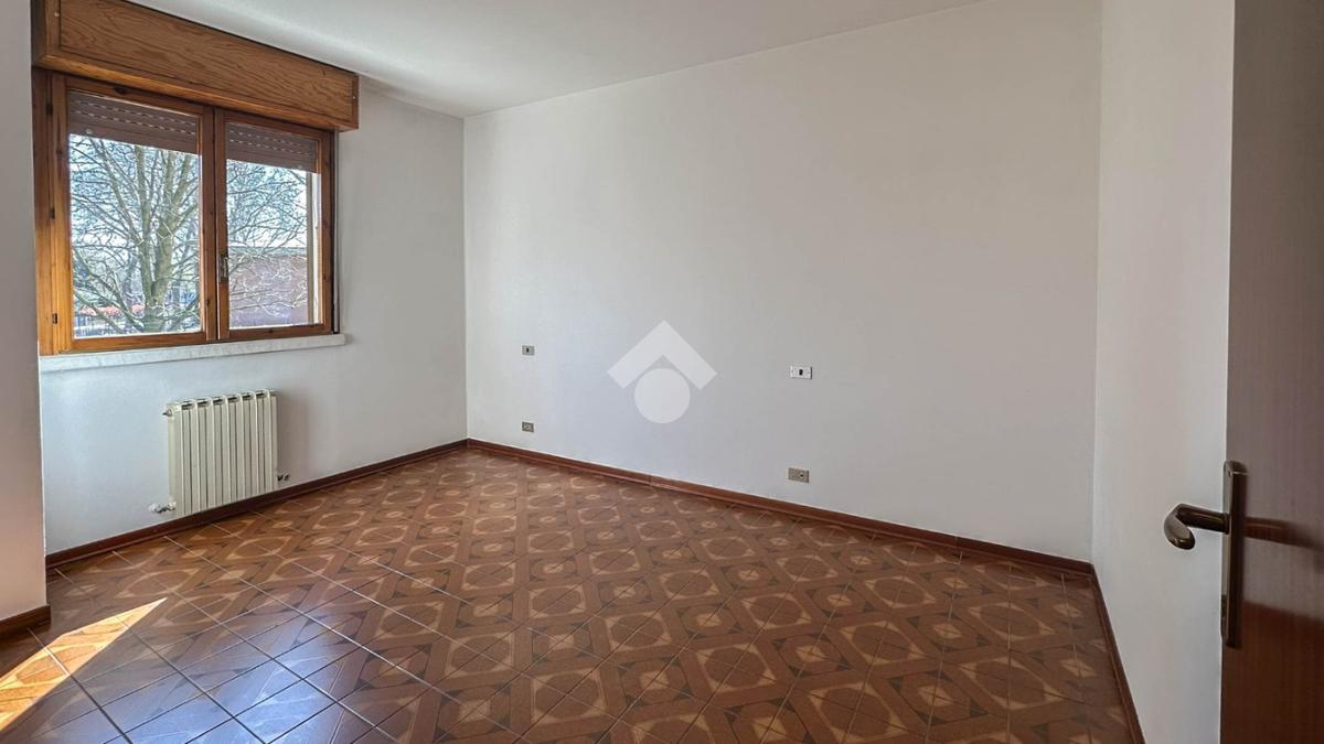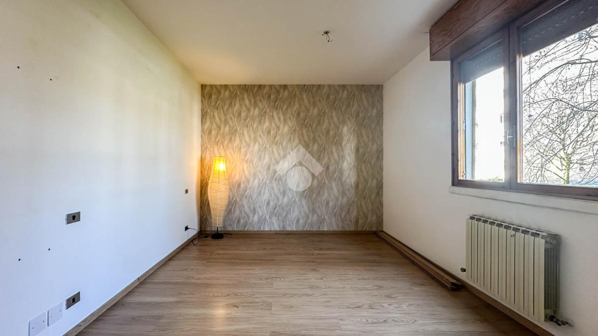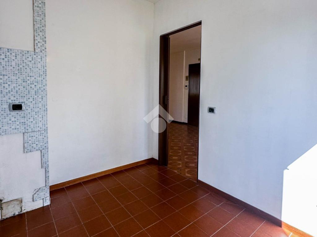 L'appartamento è composto di soggiorno con doppio affaccio e balcone, cucinotto, due camere da letto matrimoniali e bagno con vasca.