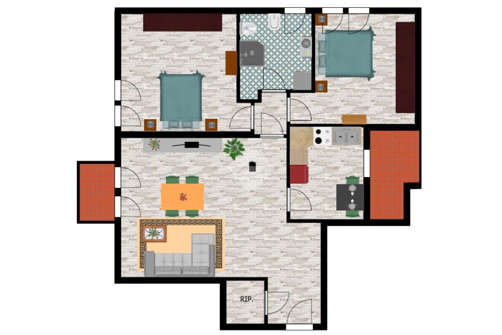 L'immobile si presenta in buono stato conservativo dove evidenziare il rifacimento del bagno e dell'impianto elettrico che risulta certificato. L'appartamento è composto di un comodo ingresso che si apre su una sala luminosa con accesso diretto ad un piccolo balcone. La cucina, completamente arredata, dispone anch'essa di un balcone loggiato, garantendo praticità e comfort. La zona notte comprende due camere da letto matrimoniali e un bagno con doccia. Molto pratico il ripostiglio presente nelle zona ingresso.