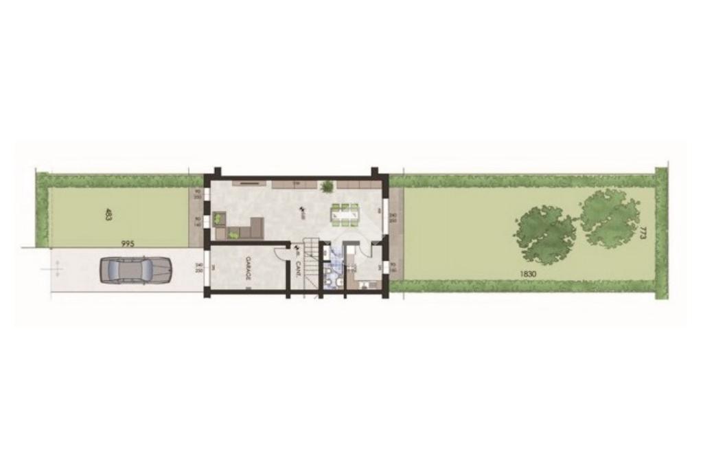 Il complesso dispone di una ampia area comune accessibile solamente dai futuri proprietari e amici/parenti, in parte destinata a verde ed in parte a parcheggio, dove saranno disponibili sia posti auto comuni sia posti auto privati per ogni unità abitativa.