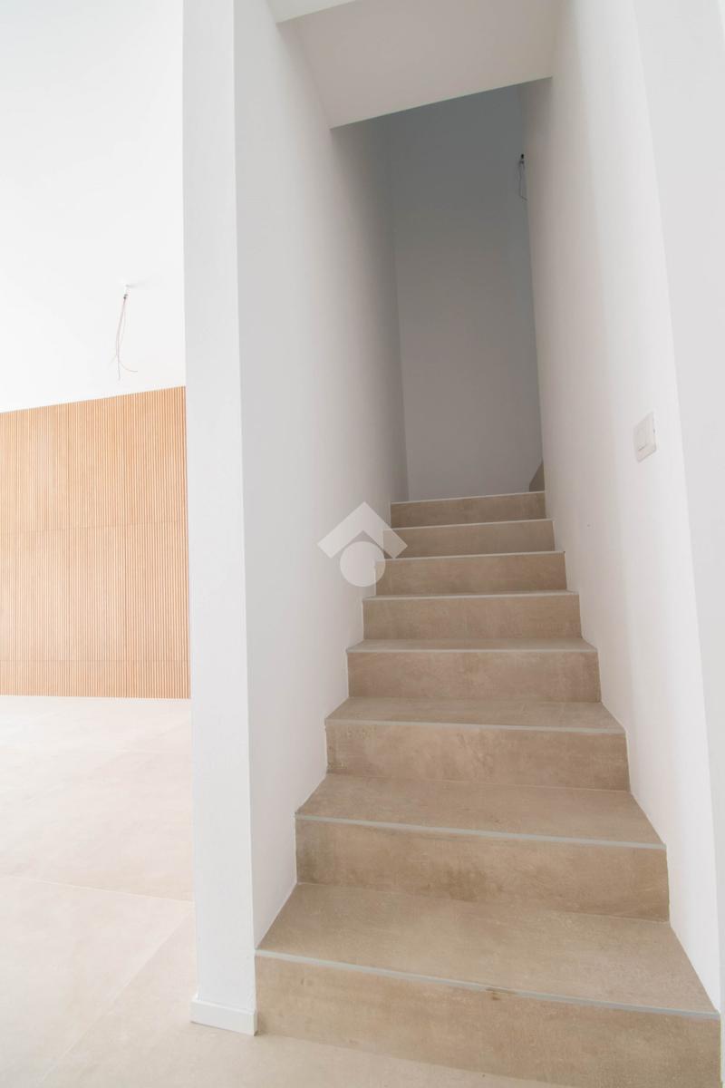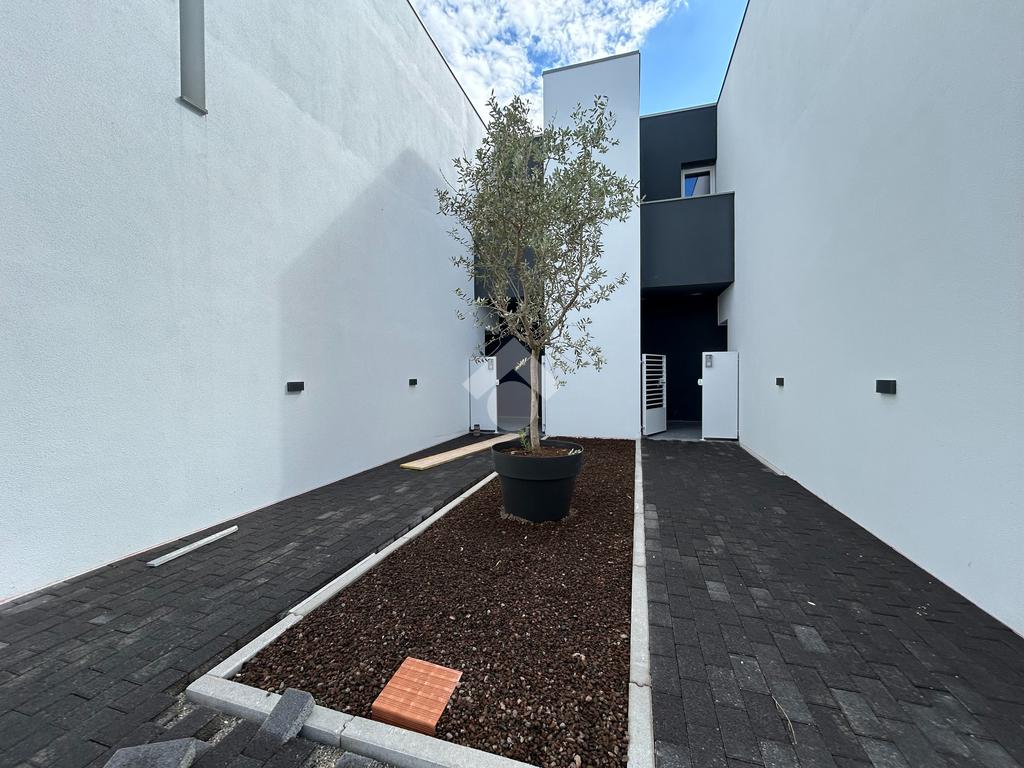 L'abitazione si sviluppa su soli 2 piani. Al piano terra si sviluppa una ampia zona giorno open-space con affaccio sul giardino privato, bagno di servizio e garage di 24 mq. con possibilità di ricarica per veicoli elettrici. Al piano primo la zona notte è composta di 3 camere da letto matrimoniali, 2 bagni e 2 balconi.
