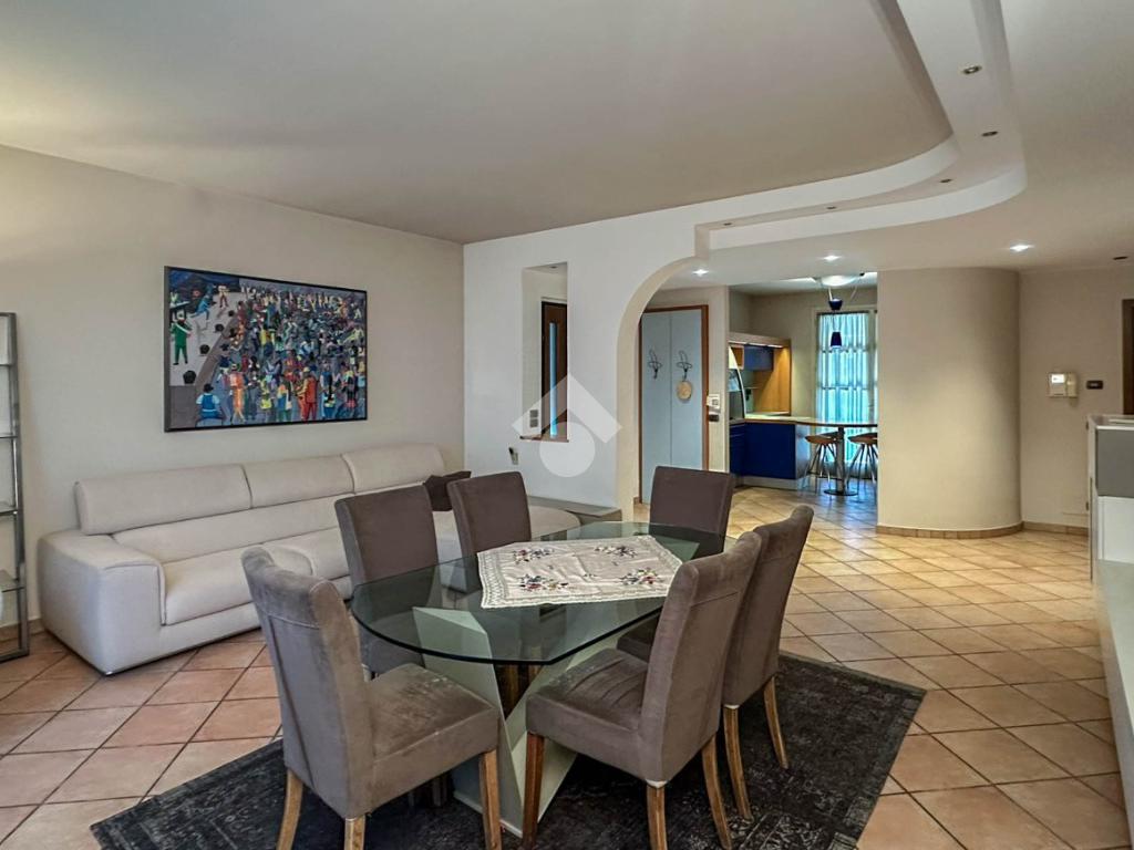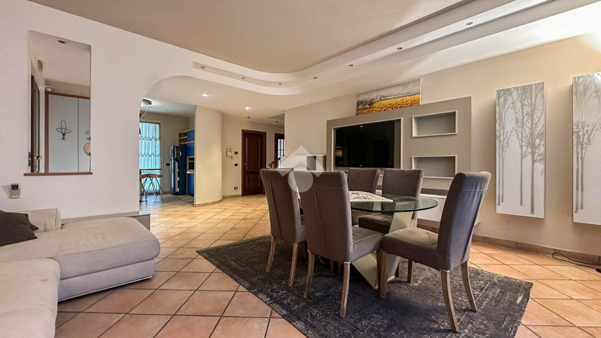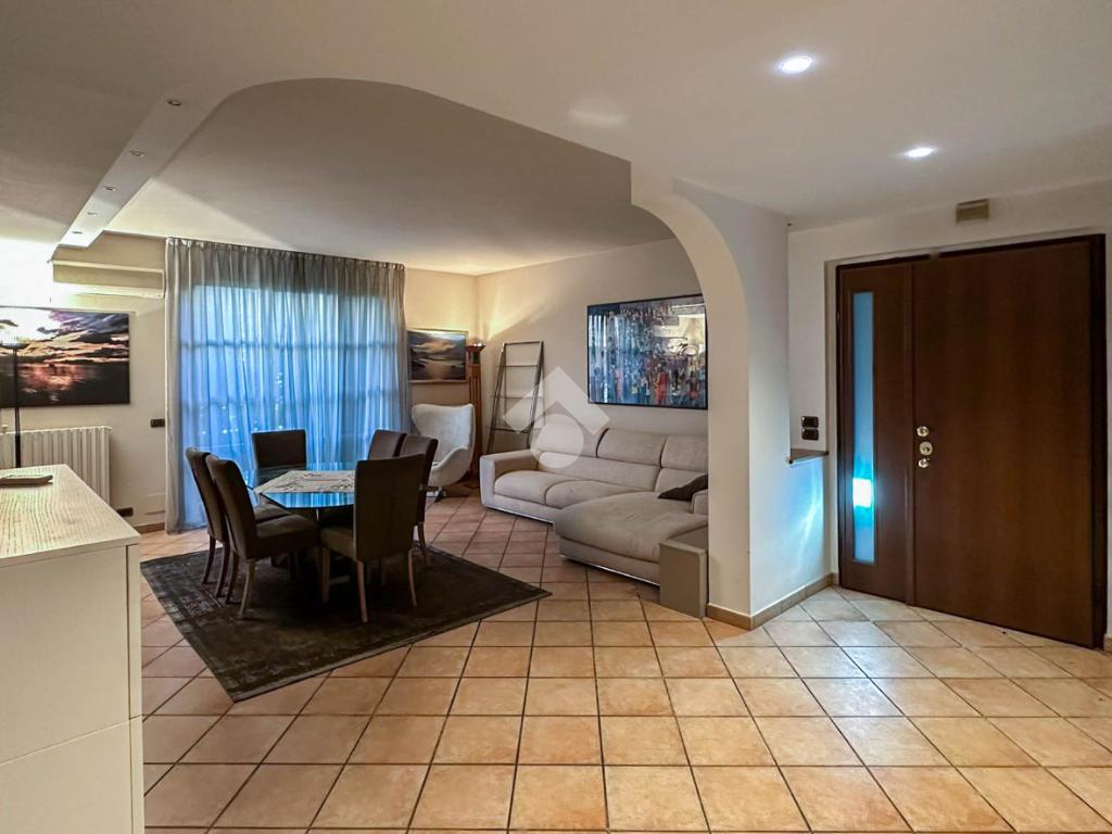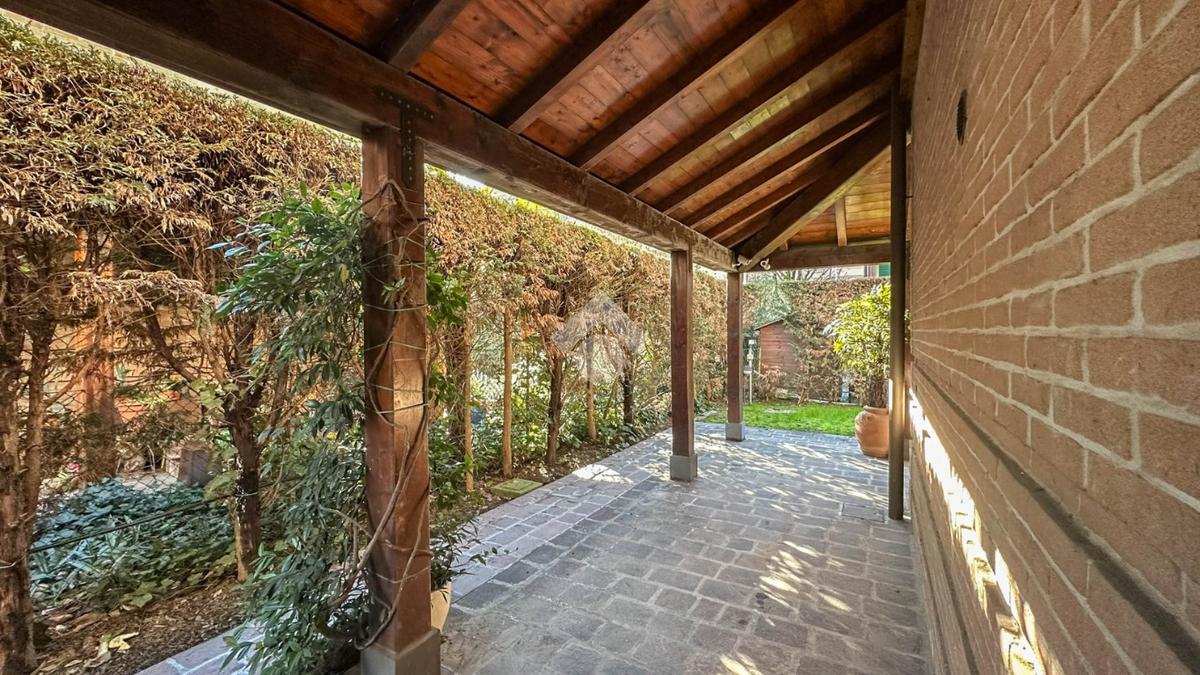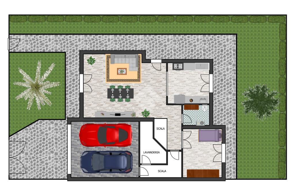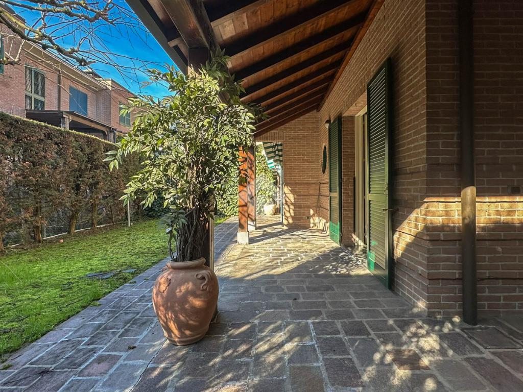 Le importanti metrature interne caratterizzano questa elegante abitazione, sicuramente l'ideale per una famiglia numerosa, che possono altresì sfruttare l'ampio spazio esterno destinato in parte a verde ed in parte a portico da utilizzare nei mesi caldi.