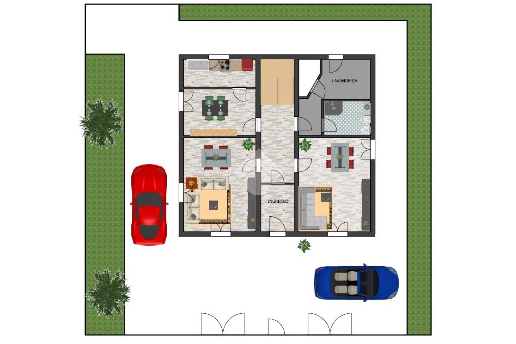 Il lotto sul quale insiste la casa è di circa 400 mq. Il garage attualmente non è presente ma grazie due cancelli carrai è possibile parcheggiare diverse auto all'interno della proprietà.
