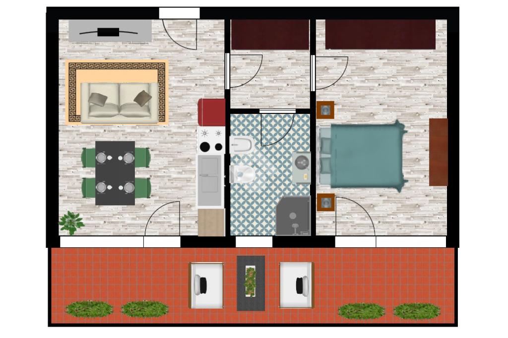 L'eccellenza di questa soluzione è sicuramente il terrazzo di circa 20 spazio esterno ideale per godere di momenti all'aria aperta, accessibile sia dal soggiorno sia dalla camera.